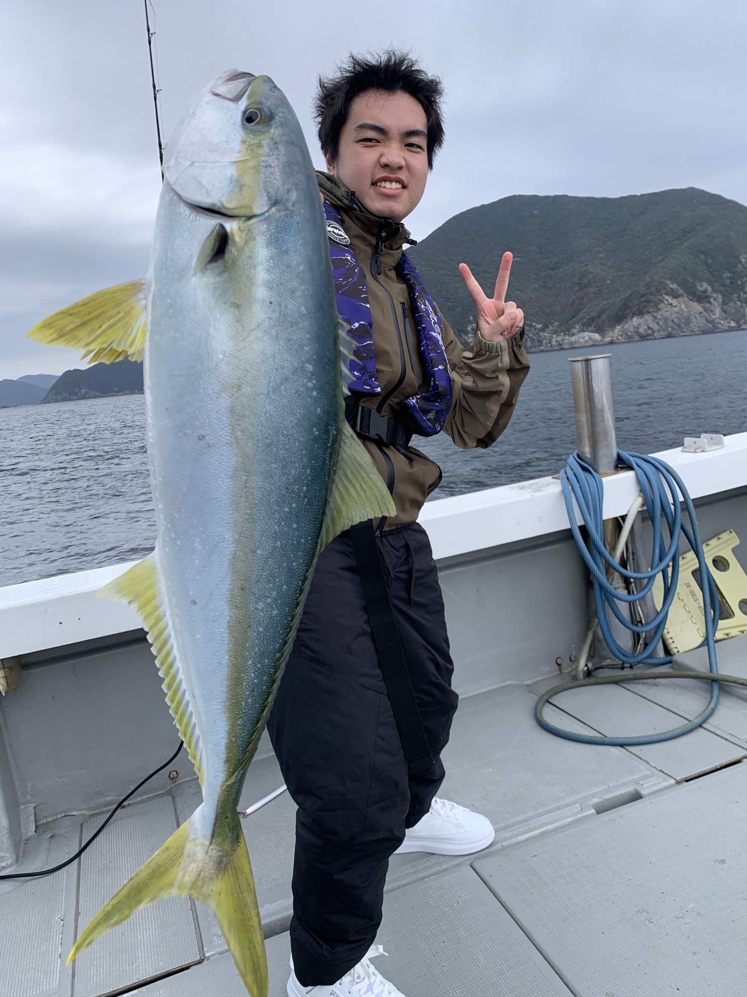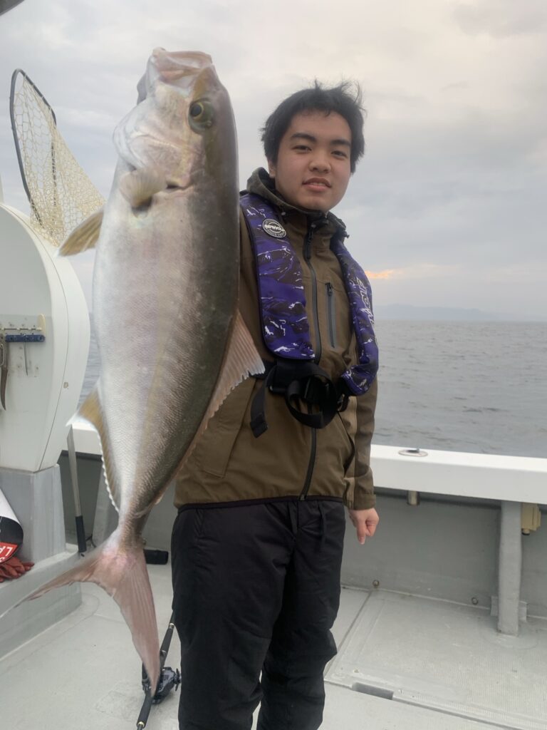 (五島遊漁船) 未分類 Twitter Facebook LINE 2026.03.31 雨にも負けず 風にも負けず ジギングで頑張ってもらいまし ヒラマサ、カンパチ、ヤズ 青物グランドスラム達成🎉 ありがとうございました🙏